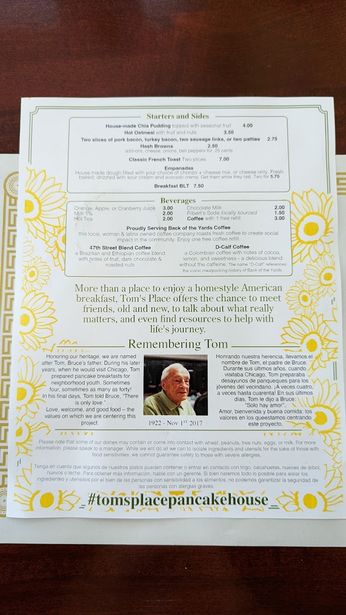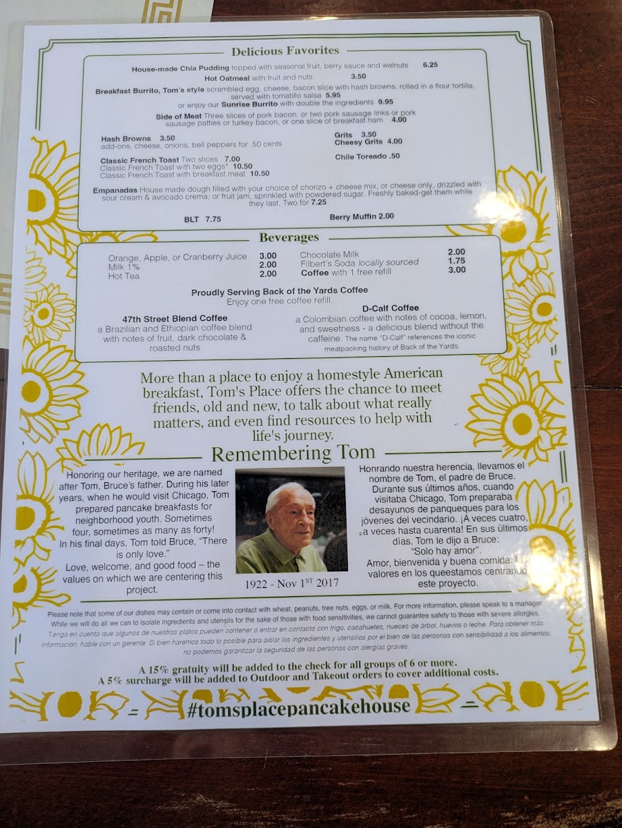 Beyond the food, the kind service and vibrant décor, adorned with cheerful sunflowers, make every visit memorable. Tom’s Place isn't just about the delicious meals; it's a wholesome dining experience that strives to support local youth through community initiatives. Come for the food, stay for the love!